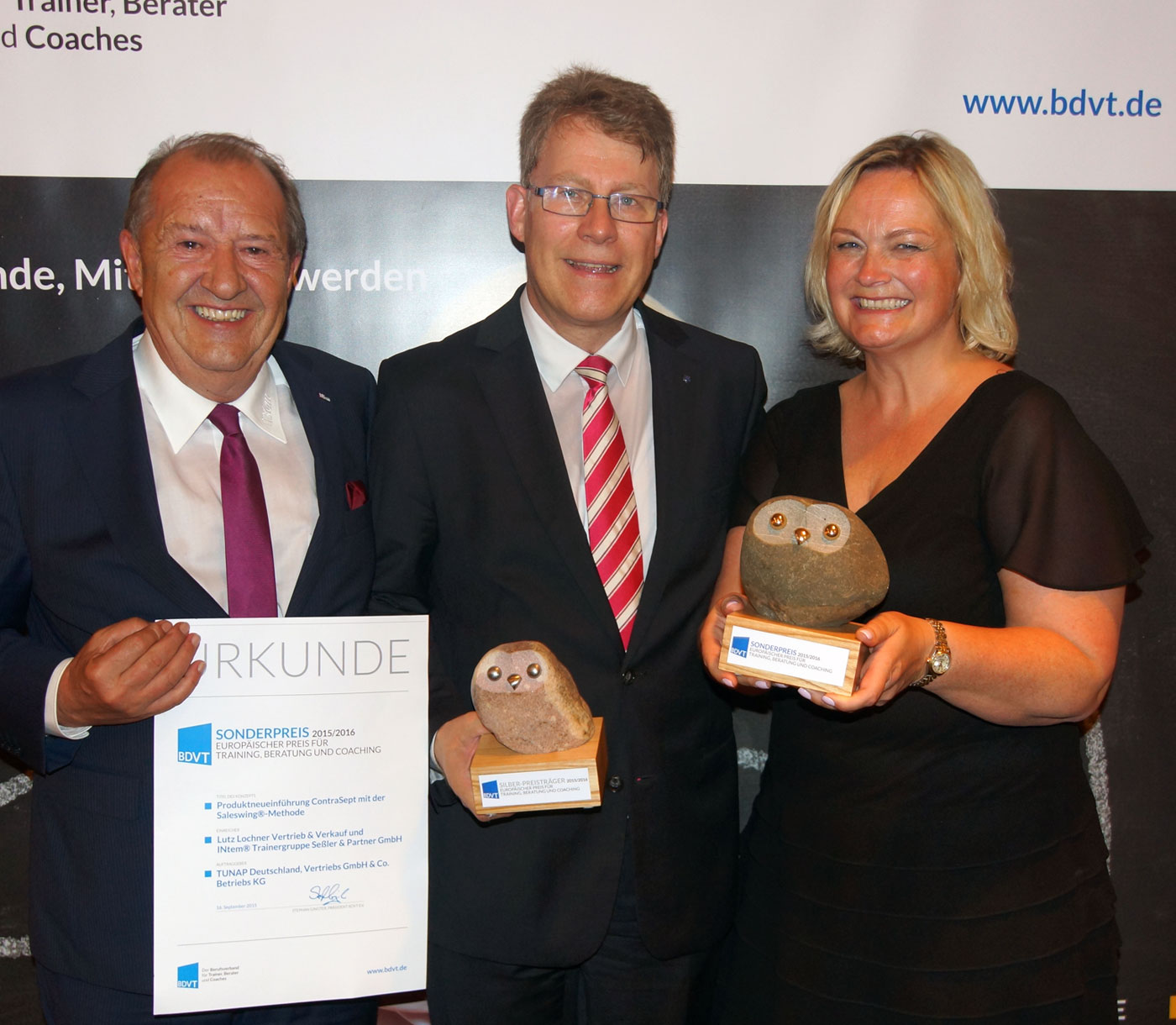 Auf der diesjährigen Messe „Zukunft Personal“ in Köln wurde Lutz Lochner Vertrieb & Verkauf zusammen mit INtem® für ein Trainingsprogramm prämiert, mit dem sich Umsatzsteigerungen im Vertrieb selbst bei schwierigen Marktbedingungen und in einem komplexen Marktumfeld realisieren und zudem mit den Aspekten Gesundheitsbewusstsein und Umweltschutz verknüpfen lassen.